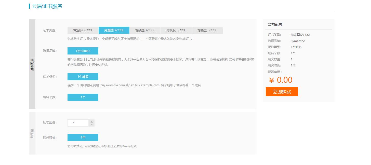 阿里云/景安 Symantec DV 证书